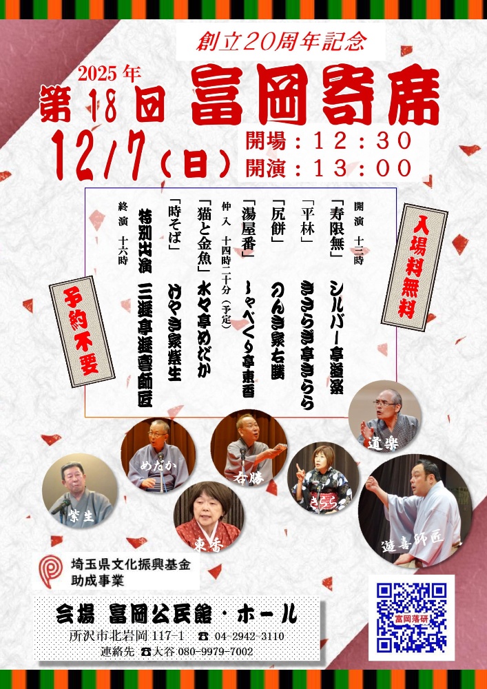 | 平成17年 11月 | 富岡落語研究会 結成 |